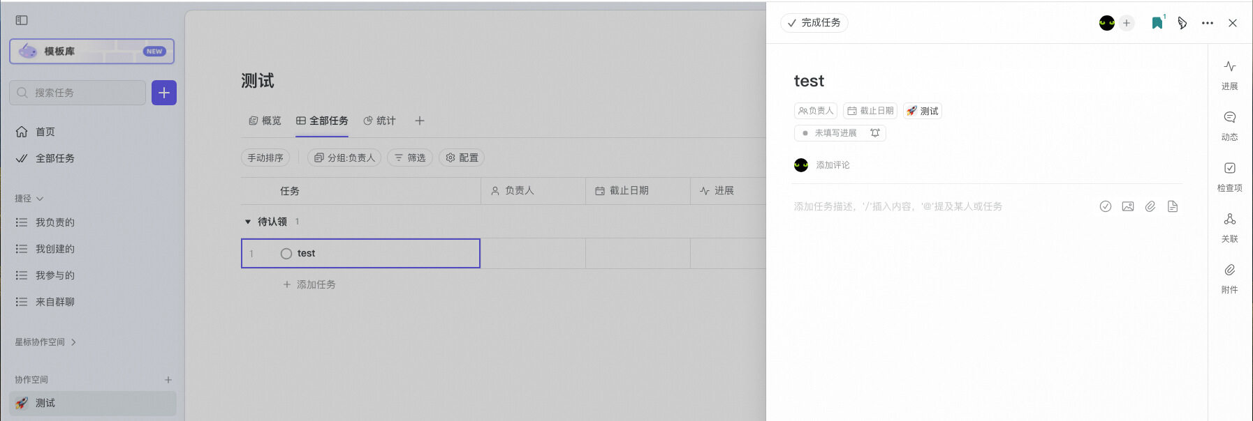 例如,有个协作空间名为测试,如下图所示,目前没有任何任务。